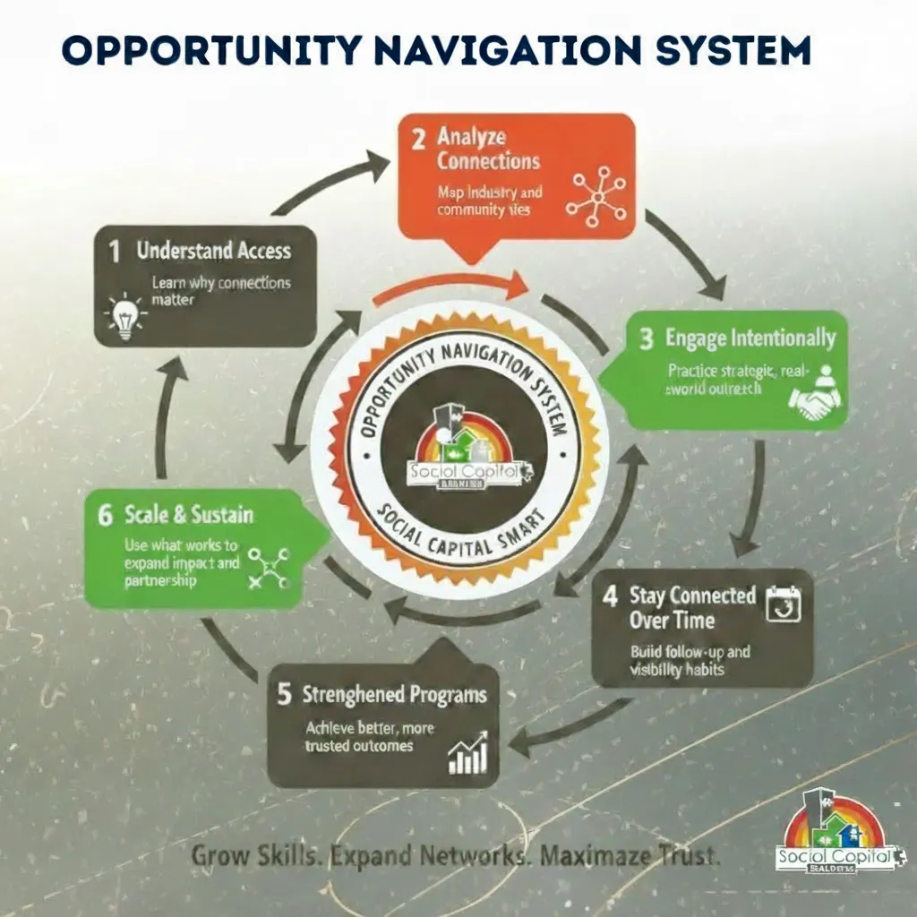 Social Capital Builders partners with mission‑driven systems, employers, and community organizations to strengthen connection access, improve outcomes, and advance economic mobility and social well‑being across diverse communities.